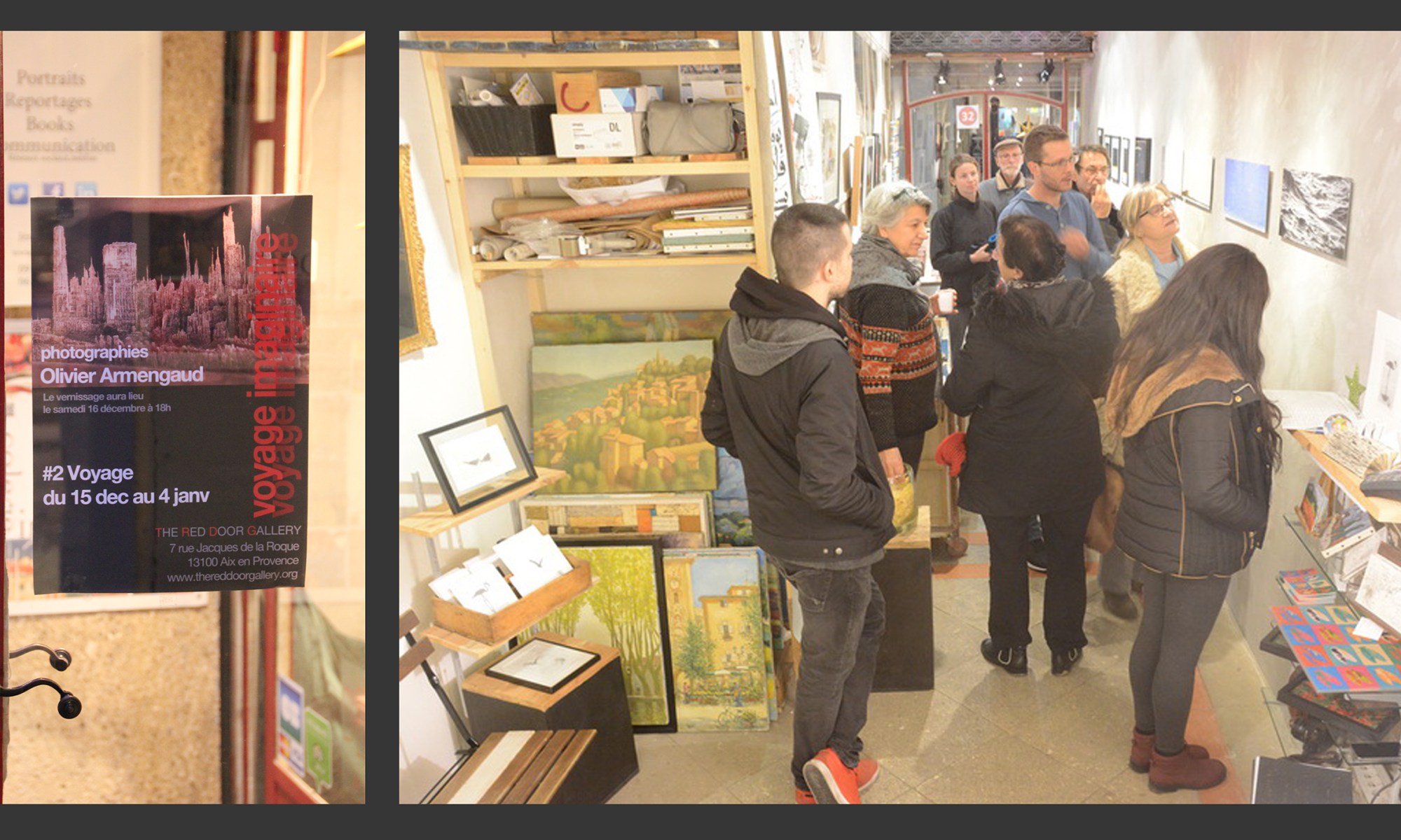 – The Red Door Gallery, 7 rue Jacques de la Roque, 13100 AIX-EN-PROVENCE. Ouvert du lundi au samedi de 10h à 13h et de 15h à 18h30. Téléphone : 09 72 58 37 30.